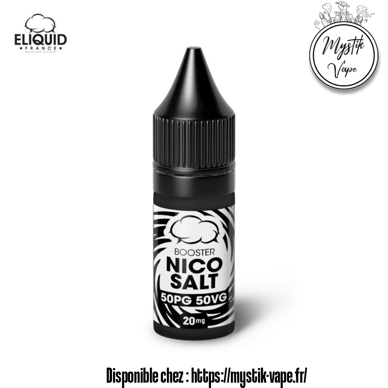 Booster aux sels de nicotine 20 mg/ml – idéal pour une vape douce et rapide. Format 10 ml, 50/50 PG/VG, made in France.